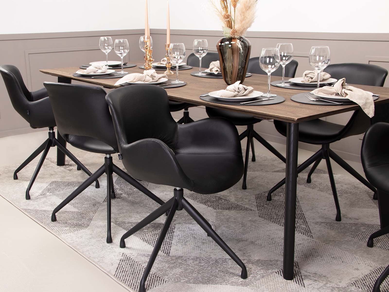 Uanset om du indretter en minimalistisk spisestue eller ønsker et mere klassisk udtryk, vil Hundevad Olivia i sort læder give rummet karakter og varme. Den sorte farve gør stolen utrolig alsidig og let at kombinere med både lyse og mørke borde, tekstiler og indretningselementer.