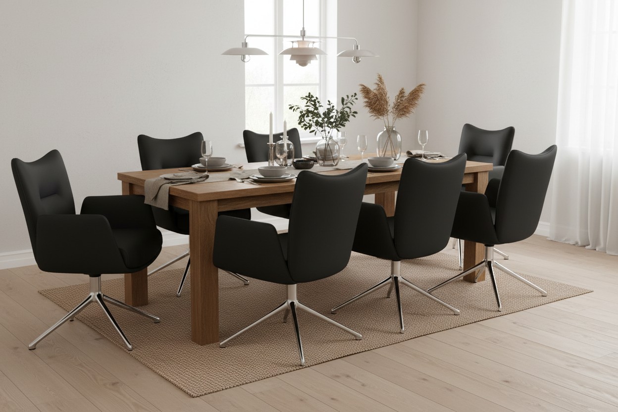 Stolens elegante sorte læder giver et eksklusivt udtryk, mens det robuste sorte stel sikrer stabilitet og lang levetid. Med praktisk returdrej kan du nemt vende dig mod samtalen eller ændre arbejdsstilling uden at rejse dig, og den smarte vip i ryggen tilbyder behagelig støtte, der følger dine bevægelser og aflaster ryggen ved længere siddeperioder. Hundevad Baron er ideel til både moderne kontorer, mødelokaler og stilfulde hjemmekontorer, hvor æstetik og funktionalitet går hånd i hånd. Læderet er let at vedligeholde og patinerer smukt over tid, hvilket gør stolen til en langsigtet investering. Vælg Hundevad Baron stol i sort læder med sort stel, hvis du ønsker en klassisk, men samtidig moderne stol med fleksible bevægelsesmuligheder og ergonomisk komfort. Bestil i dag og oplev forskellen mellem en gennemtænkt kontorstol og almindelig siddekomfort — din ryg vil takke dig.